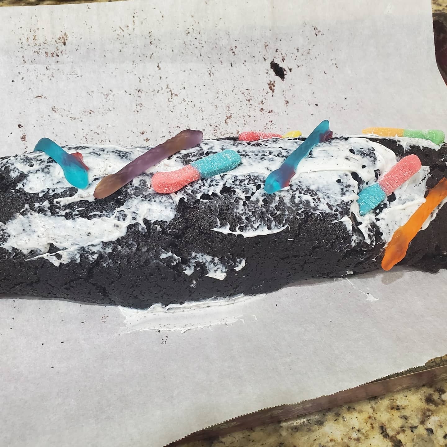 Then we made swamp juice, which was essentially a limeade float with green food coloring added to make it look extra swampy. We bought pre-made limeade, added green food coloring, and then topped it off with a scoop of lime sherbet.