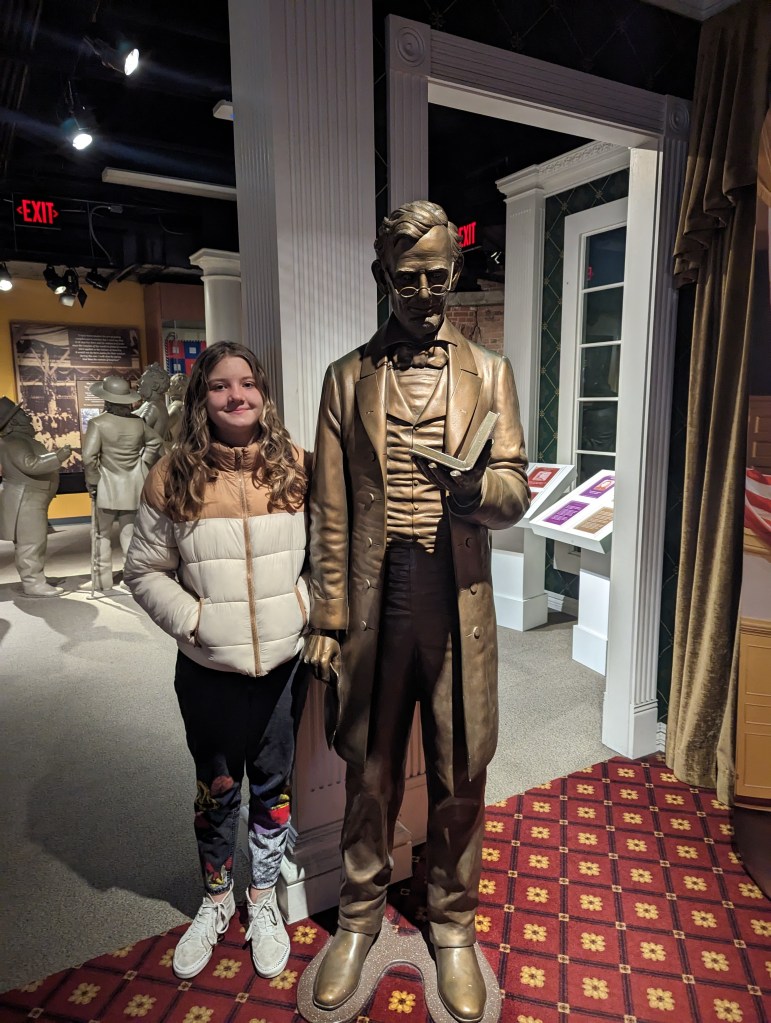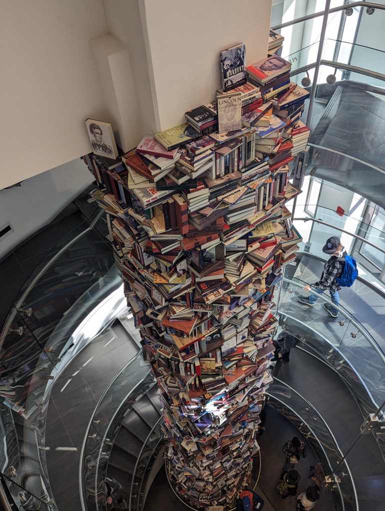 After the theatre, you head across the street to the home where President Lincoln died. Someone told Regina that there was still blood on the pillow in the room where he died, so she was very intrigued. However, her macabre hopes were dashed – we didn’t see any. After the home, there is another museum to walk through that ends with a pillar of books written about Lincoln. All in all, I’m glad we made this a stop. I’d recommend adding it to a visit if you’ve never been.