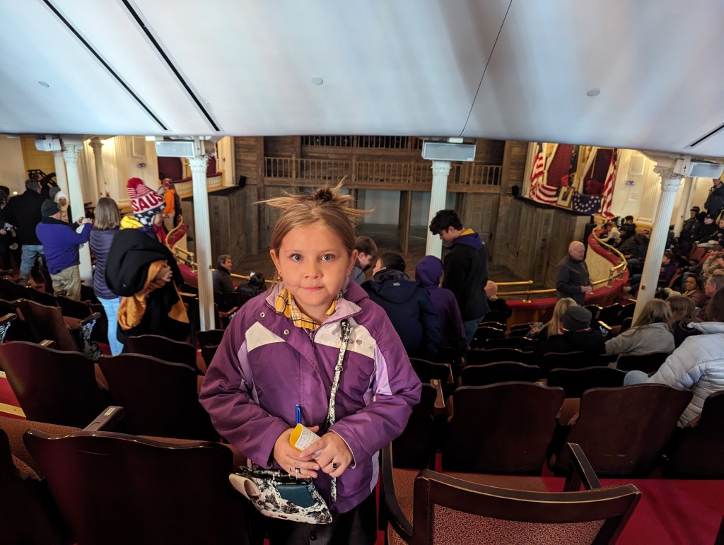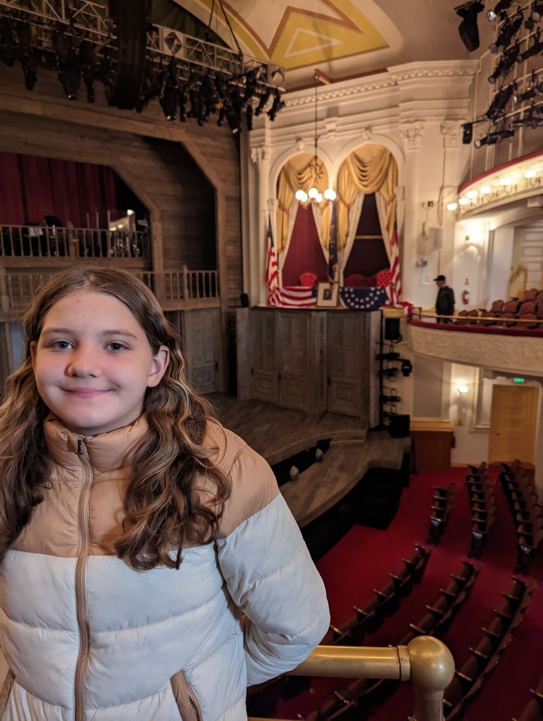 The girls took their time looking at everything, but we did have to hurry towards the end because the theater portion was only remaining open for an additional 30 minutes. I didn’t know it is still a working theater, and there was a performance that night. So, we headed upstairs to view the theater from the mezzanine.