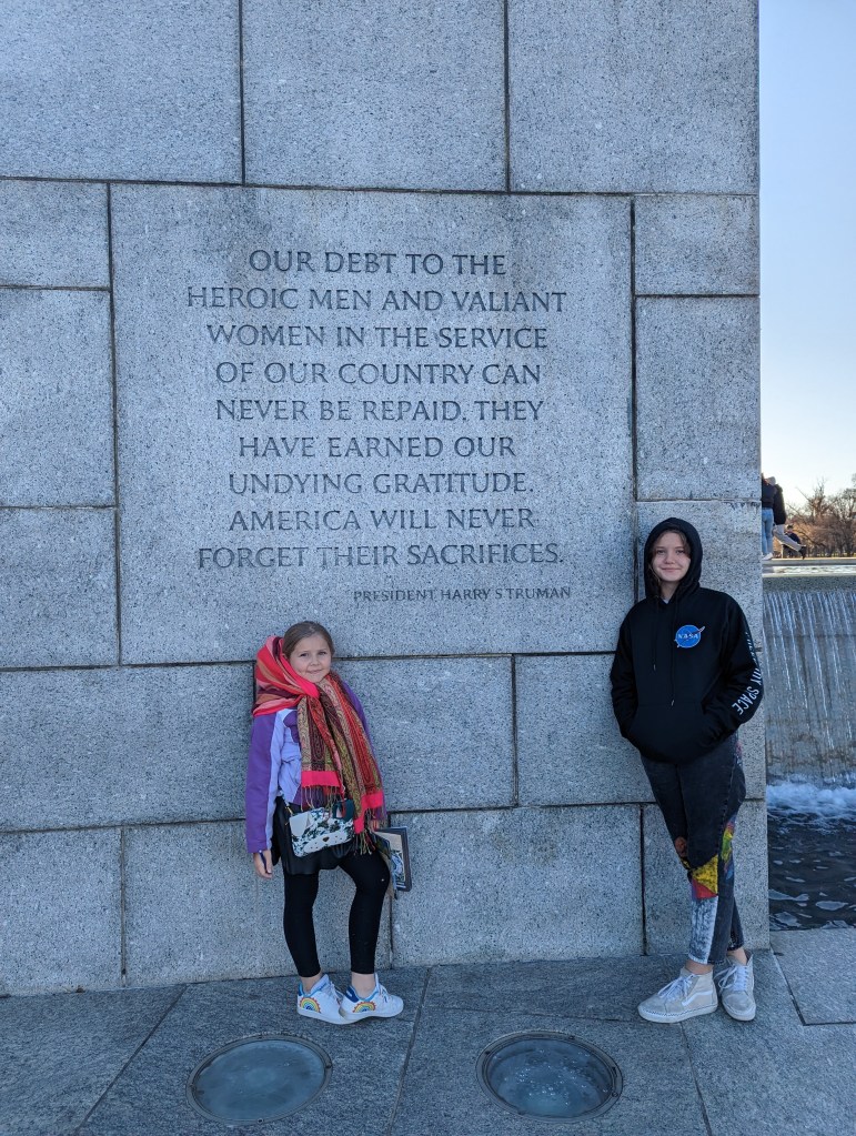 I think the memorial that struck the girls the most was the Vietnam Memorial. We talked a lot about how controversial the war was, how we didn’t really understand why we were fighting the war, how scary the draft was, and what that would be like today. As we walked along, the girls looked at the individual memorials people had left for their loved ones. We discussed how if this were happening now, it would be their cousins and their friends going to war – literal children being sent off to fight a war that they didn’t want to be in or understand at all.